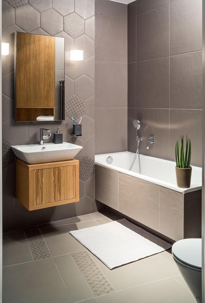 Primerna razporeditev ploščic - pravokotne keramične ploščice, razporejene vodoravno, bodo optično povečale in razširile kopalnico. In obratno, urejena navpično "povleče" notranjost prenizko. Enako velja za vzorce: pasovi in črte. Praviloma vzorčene keramične ploščice optično zmanjšajo kopalnico. Prinašajo vtis izčrpavanja presežka in prenasičenosti. Alternativa vzorcem in barvitim vzorcem so modne ploščice z jasno teksturo. So variacija, kopalnice pa optično ne zmanjšajo.